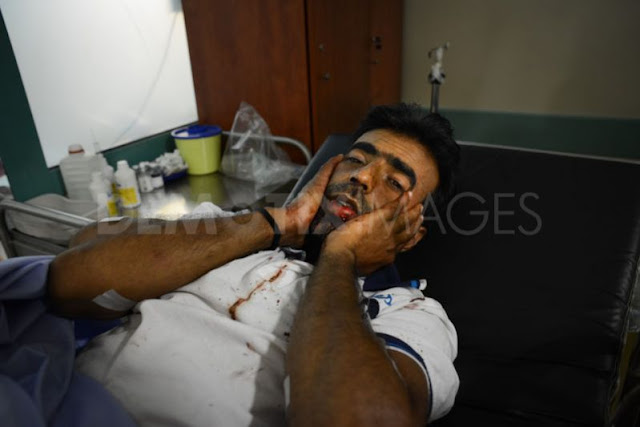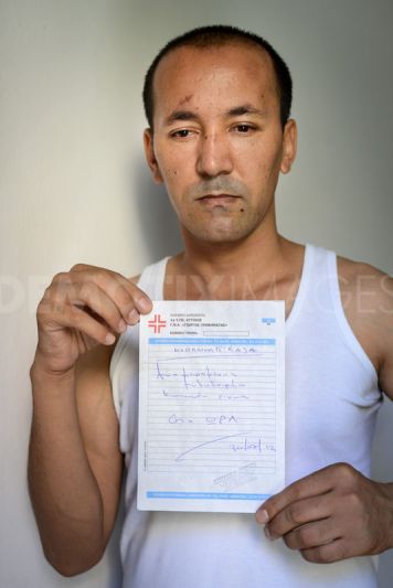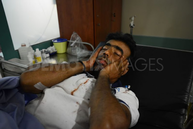 | Sayed Hosein Abbas, a Pakistani migrant in Greece, lies injured in hospital after he was attacked by a group of five Greek men. |